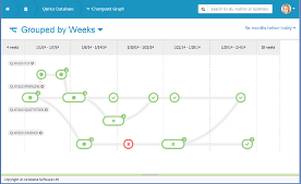 Revise sus branch y dependencias en una vista gráfica de línea de tiempo. Ver en tiempo real como los branch son ramificados y se fusionaron. Revisar fácilmente la salud y la buena disposición de sus cambios para determinar si están listos para ser fusionados o liberado.