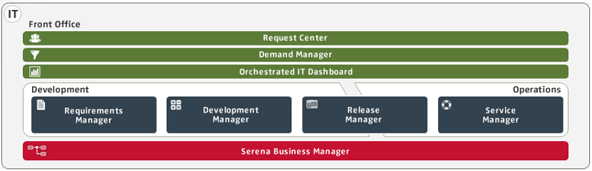 Serena automatiza de principio a fin el desarrollo de aplicaciones, ayudando a las organizaciones a registrar todas las peticiones, gestionando de forma sencilla los cambios en los requisitos, gestionando la configuración de las aplicaciones, e incluso realizando el despliegue.